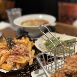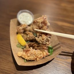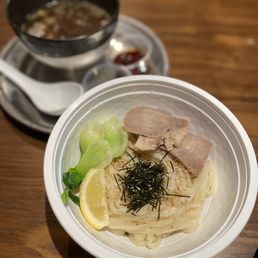Utsuke Tsukumen is really good! Super unique and the noodles are so nice and chewy. The broth is flavorful as well. The chilled shabu shabu udon broth is also very delicious. We loved how creamy it is and everything tastes x10 better with their CHILI OIL!!! Spicy Chicken Karaage is also 10/10, seasoning is on point. Service was great. No wait at 6:30PM Friday for a party of 5 but it got busier later on.