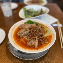 Came around lunch time on a weekday and the tables began filling slowly, but there was no wait! I ordered the Spicy Oxtail Udon and it was absolutely delicious! The broth was very clean and was not overwhelmingly salty or heavy at all, which I loved, and it had a hint of spice. The oxtail meat itself was very tender and came off the bone easily, and the chashu was nice and soft as well. The noodles seem handmade as they are a bit thinner, but they have a great chew to them! My group also ordered the chicken karaage and the breading was crispy and the chicken was juicy--so good! This restaurant is definitely worth a try! Service was great and prices aren't too bad either.